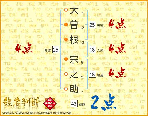 大曽根宗之助さんの天運は25画の4点!