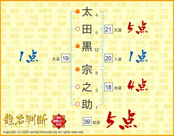 太田黒宗之助さんの総運は39画の5点!