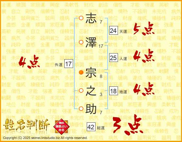 志澤宗之助さんの人運は25画の4点!