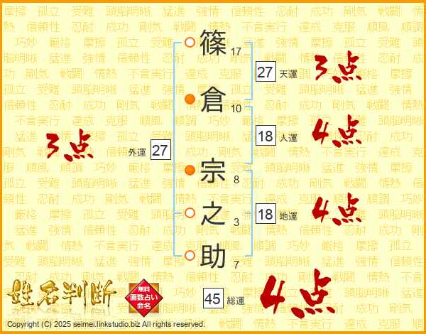篠(17画)倉(10画) 宗(8画)之(3画)助(7画)