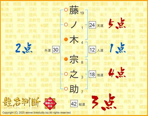 藤ノ木宗之助さんの総運は42画の3点!