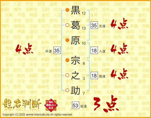 黒葛原宗之助さんの外運は35画の4点!