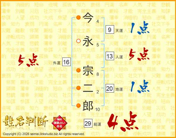 今永宗二郎さんの総運は29画の4点!