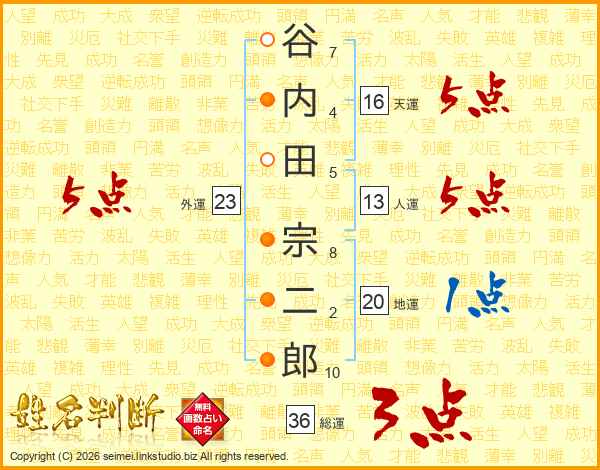 谷内田宗二郎さんの総運は36画の3点!