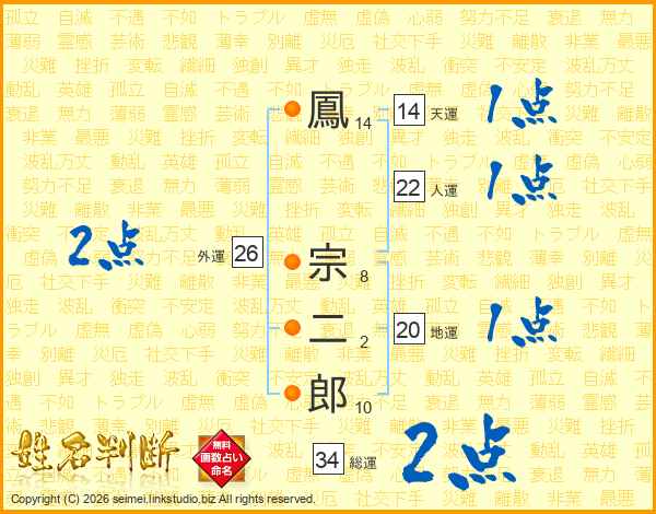鳳宗二郎さんの外運は26画の2点!