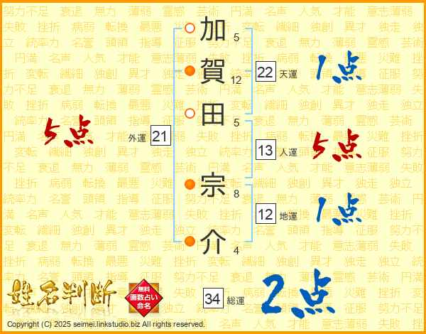 加賀田宗介さんの人運は13画の5点!