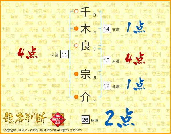 千木良宗介さんの人運は15画の4点!