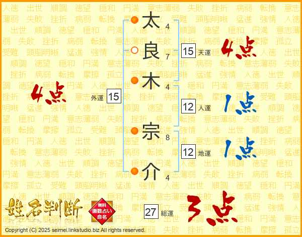 太良木宗介さんの総運は27画の3点!