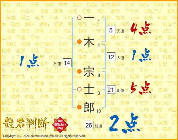一(1画)木(4画) 宗(8画)士(3画)郎(10画)