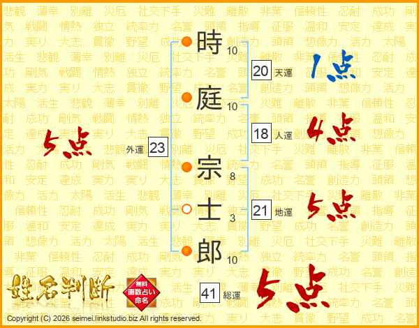 時庭宗士郎さんの総運は41画の5点!