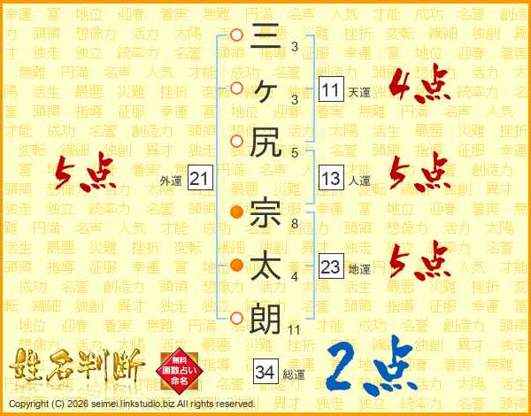 三ヶ尻宗太朗さんの地運は23画の5点!
