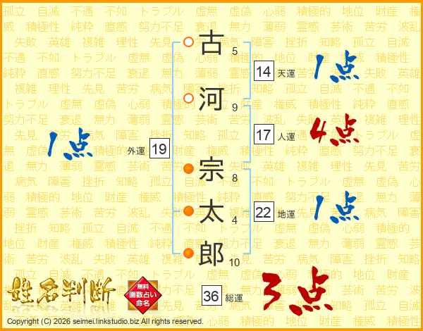 古河宗太郎さんの総運は36画の3点!