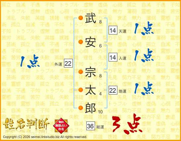 武安宗太郎さんの人運は14画の1点!