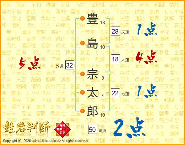 豊島宗太郎さんの外運は32画の5点!
