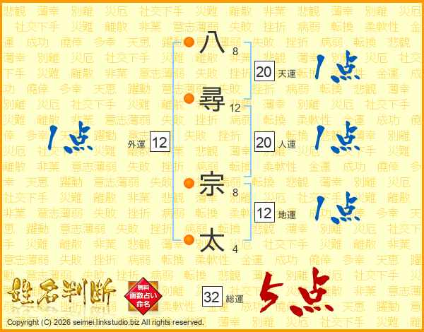 八尋宗太さんの総運は32画の5点!