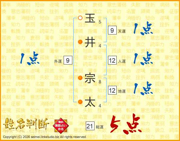 玉井宗太さんの総運は21画の5点!