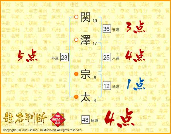 関澤宗太さんの総運は48画の4点!