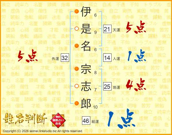 伊是名宗志郎さんの総運は46画の1点!