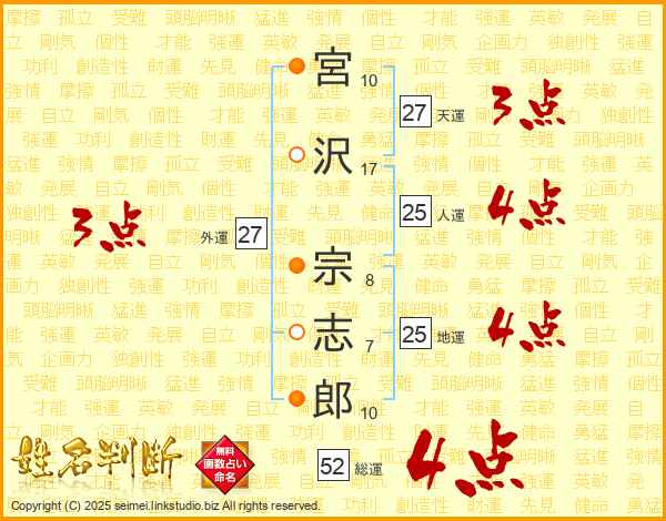 宮沢宗志郎さんの地運は25画の4点!