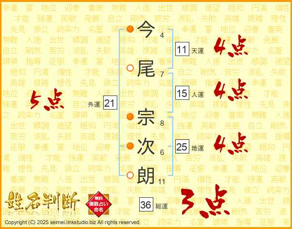 今尾宗次朗さんの天運は11画の4点!