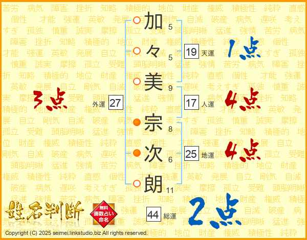 加々美宗次朗さんの総運は44画の2点!