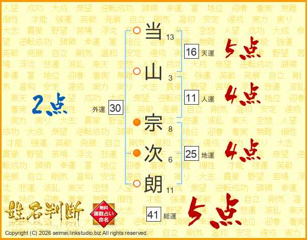 当(13画)山(3画) 宗(8画)次(6画)朗(11画)