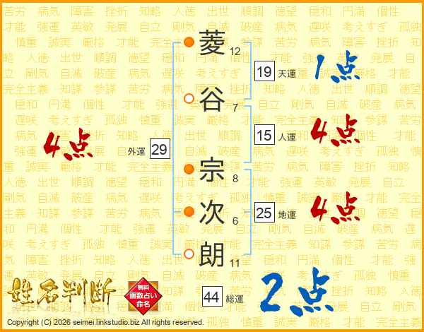 菱谷宗次朗さんの総運は44画の2点!