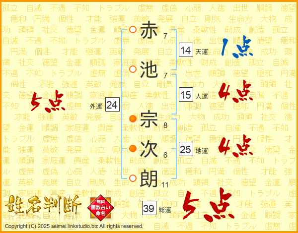 赤(7画)池(7画) 宗(8画)次(6画)朗(11画)