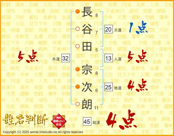 長谷田宗次朗さんの総運は45画の4点!