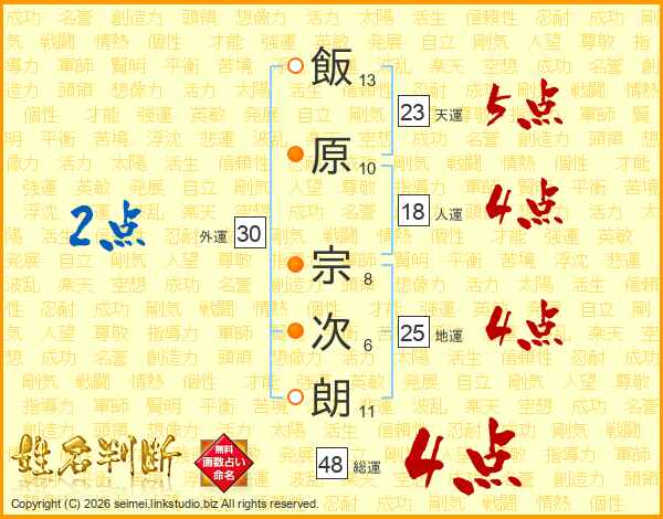 飯原宗次朗さんの総運は48画の4点!