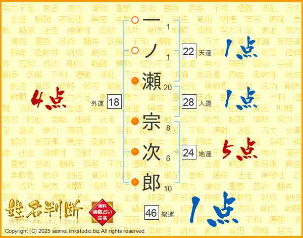 一ノ瀬宗次郎さんの総運は46画の1点!