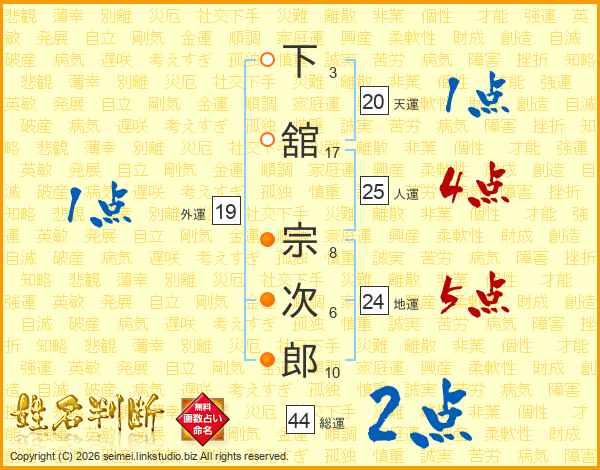 下舘宗次郎さんの総運は44画の2点!