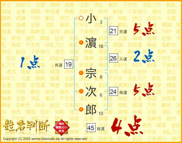 小濵宗次郎さんの総運は45画の4点!
