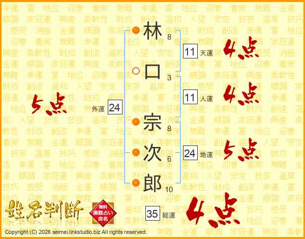 林口宗次郎さんの外運は24画の5点!