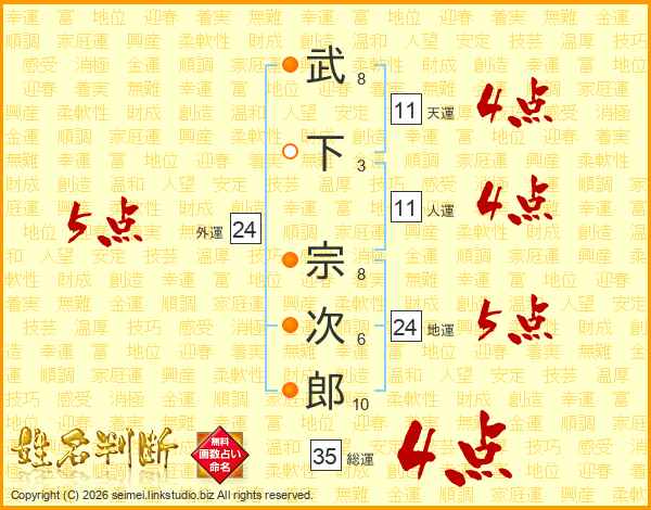 武下宗次郎さんの外運は24画の5点!