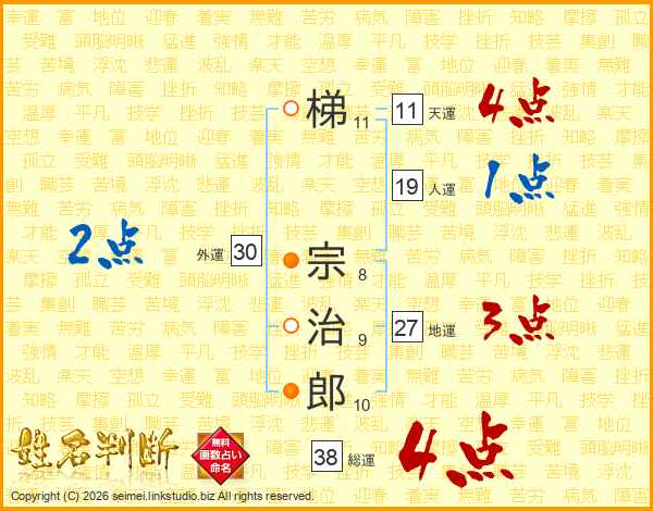 梯宗治郎さんの総運は38画の4点!