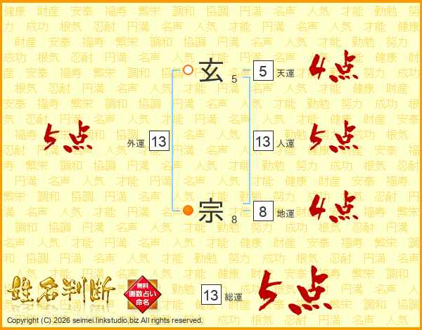 玄宗さんの総運は13画の5点!