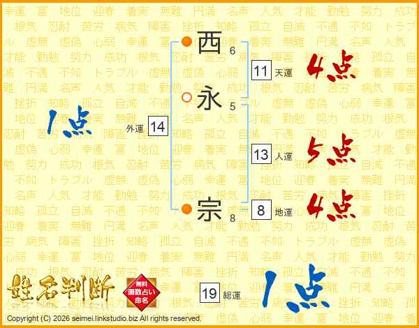 西永宗さんの総運は19画の1点!