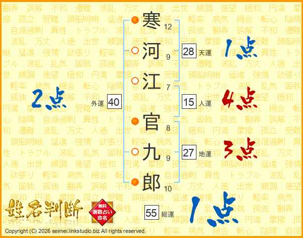 寒河江官九郎さんの総運は55画の1点!