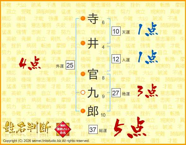 寺井官九郎さんの総運は37画の5点!