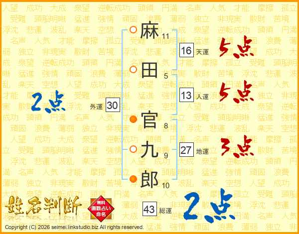 麻田官九郎さんの総運は43画の2点!