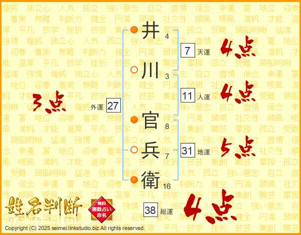 井川官兵衛さんの総運は38画の4点!