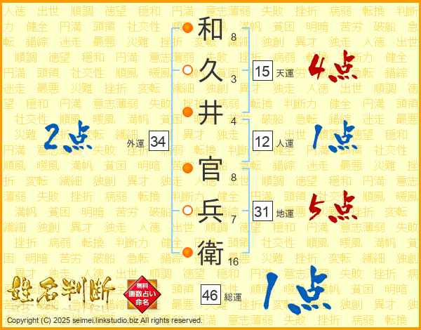 和(8画)久(3画)井(4画) 官(8画)兵(7画)衛(16画)