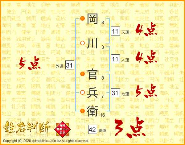 岡川官兵衛さんの外運は31画の5点!