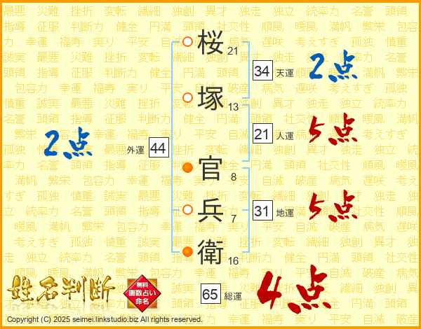 桜(21画)塚(13画) 官(8画)兵(7画)衛(16画)