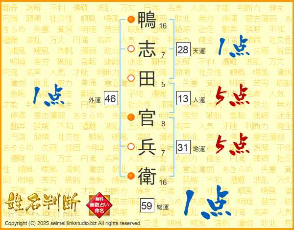 鴨志田官兵衛さんの総運は59画の1点!