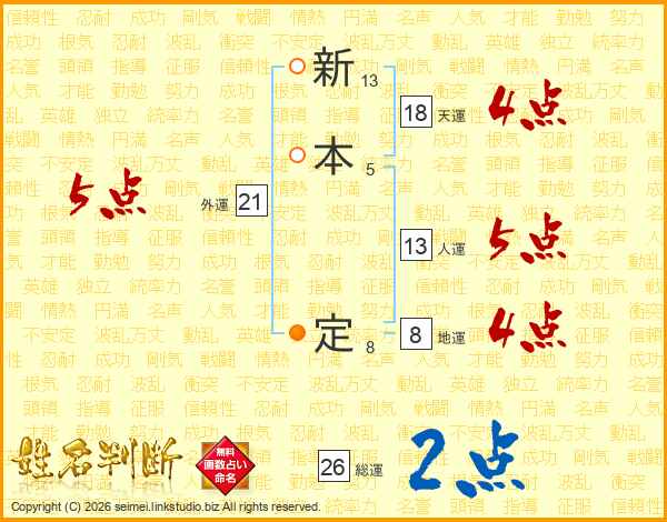 新本定さんの総運は26画の2点!
