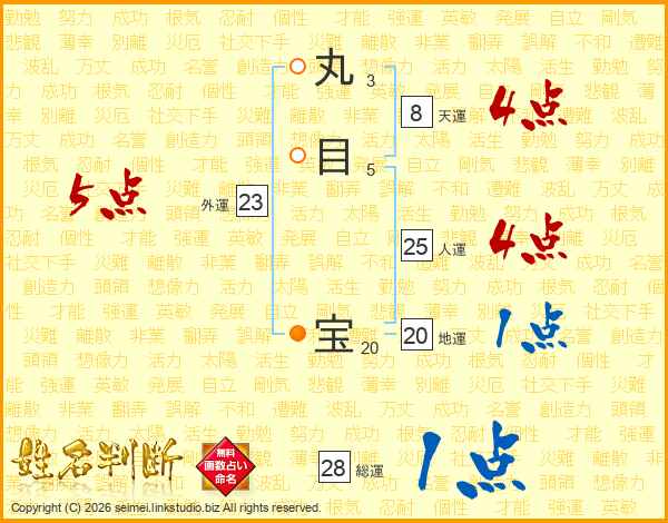 丸目宝さんの総運は28画の1点!
