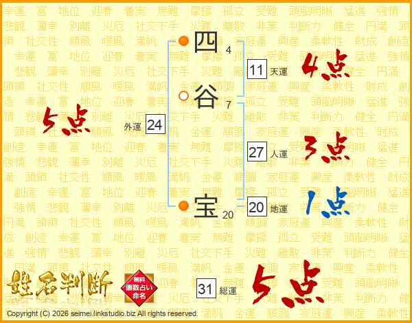 四谷宝さんの総運は31画の5点!