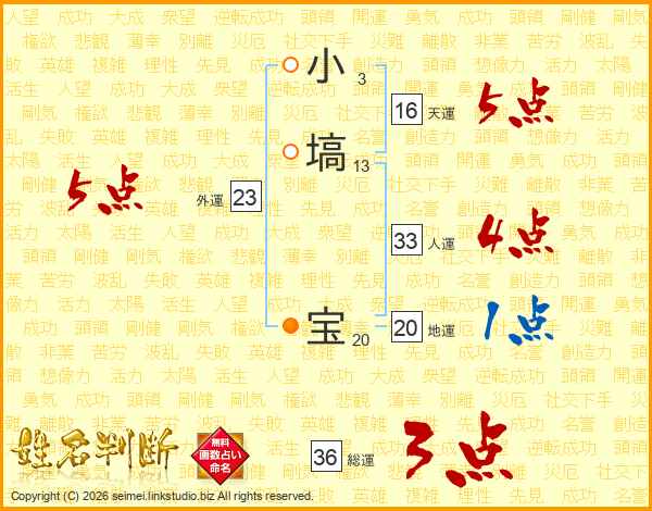小塙宝さんの人運は33画の4点!